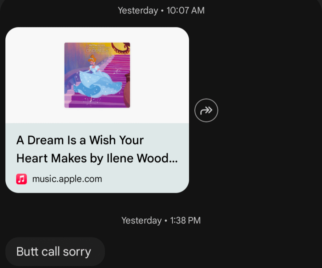 text conversation with BflyMary