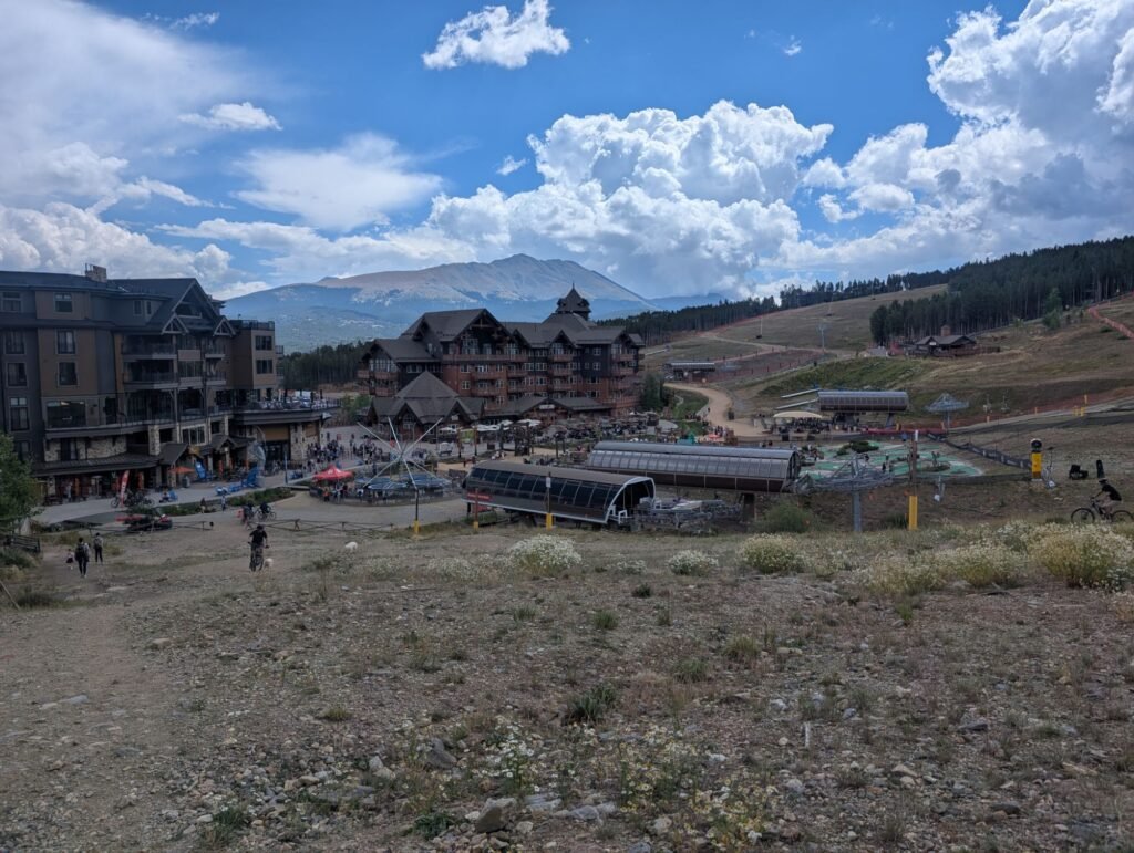 Worship music on pause because of low battery, walking through the epic Discovery activities at Breckenridge to hike down to gondola